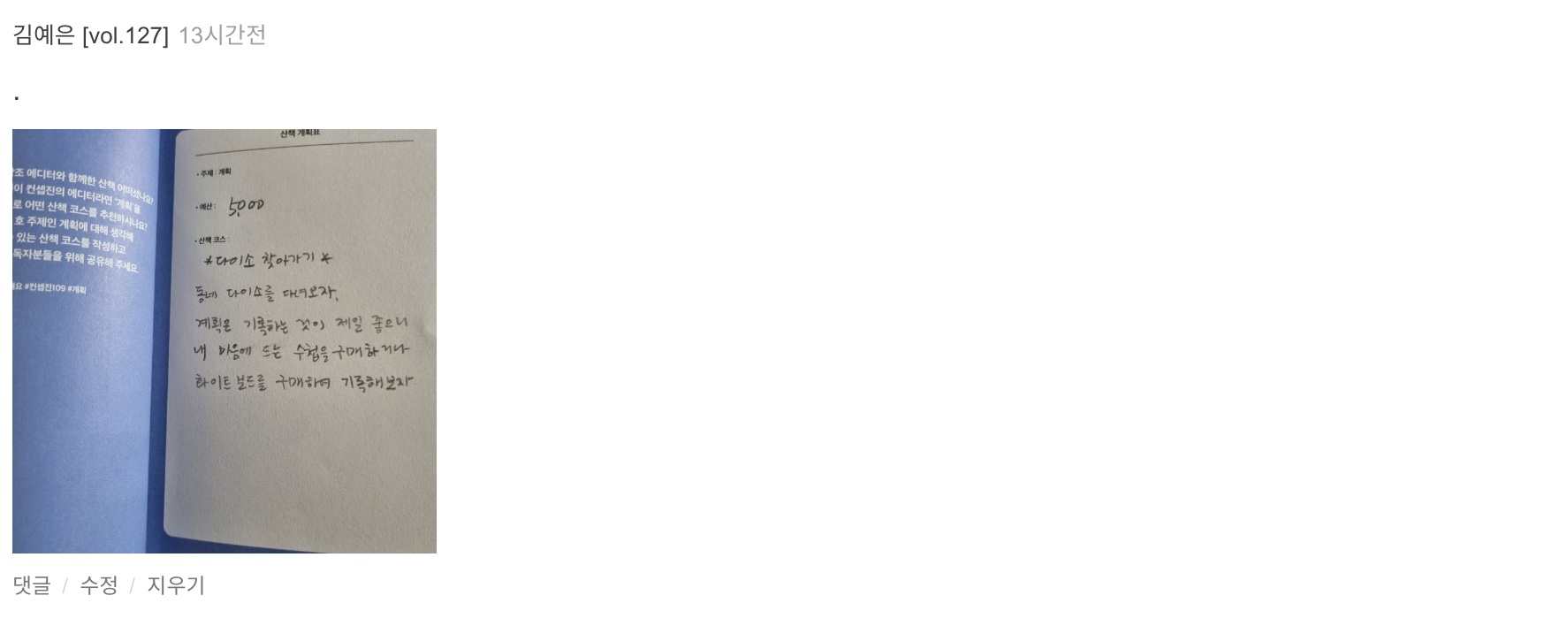 2. 작성하신 페이지를 스마트폰으로 찍어 댓글에 올려주세요. 컨셉진에 적기 어려운 경우 댓글에 내용만 적으셔도 됩니다.